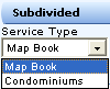 The Subdivided service contains two search services: Map Book and Condominiums. The terms Subdivided and Map Book are synonymous and by selecting the Map Book option you are selecting the same search as a Subdivided or Subdivided/Maps search.